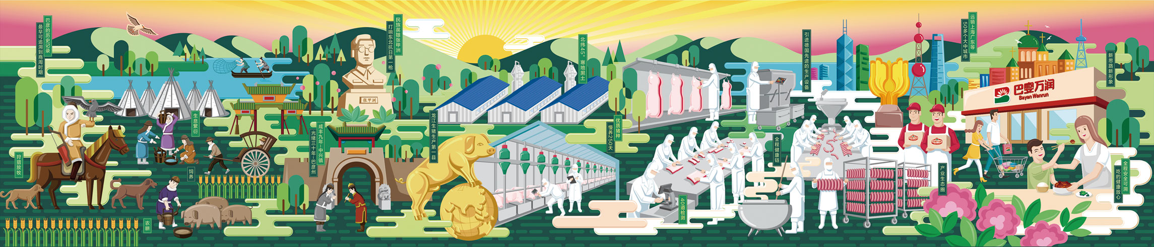 巴彥萬潤肉類加工有限公司坐落于黑龍江省哈爾濱市巴彥縣南門工業開發區,項目涵蓋了年屠宰加工150萬頭生豬屠宰項目、年出欄5萬頭無抗綠色生豬養殖項目和年生產加工2萬噸肉灌制品的生豬深加工項目,是集生豬養殖、屠宰、肉制品深加工一體化的集團企業,項目總投資4.5億元。